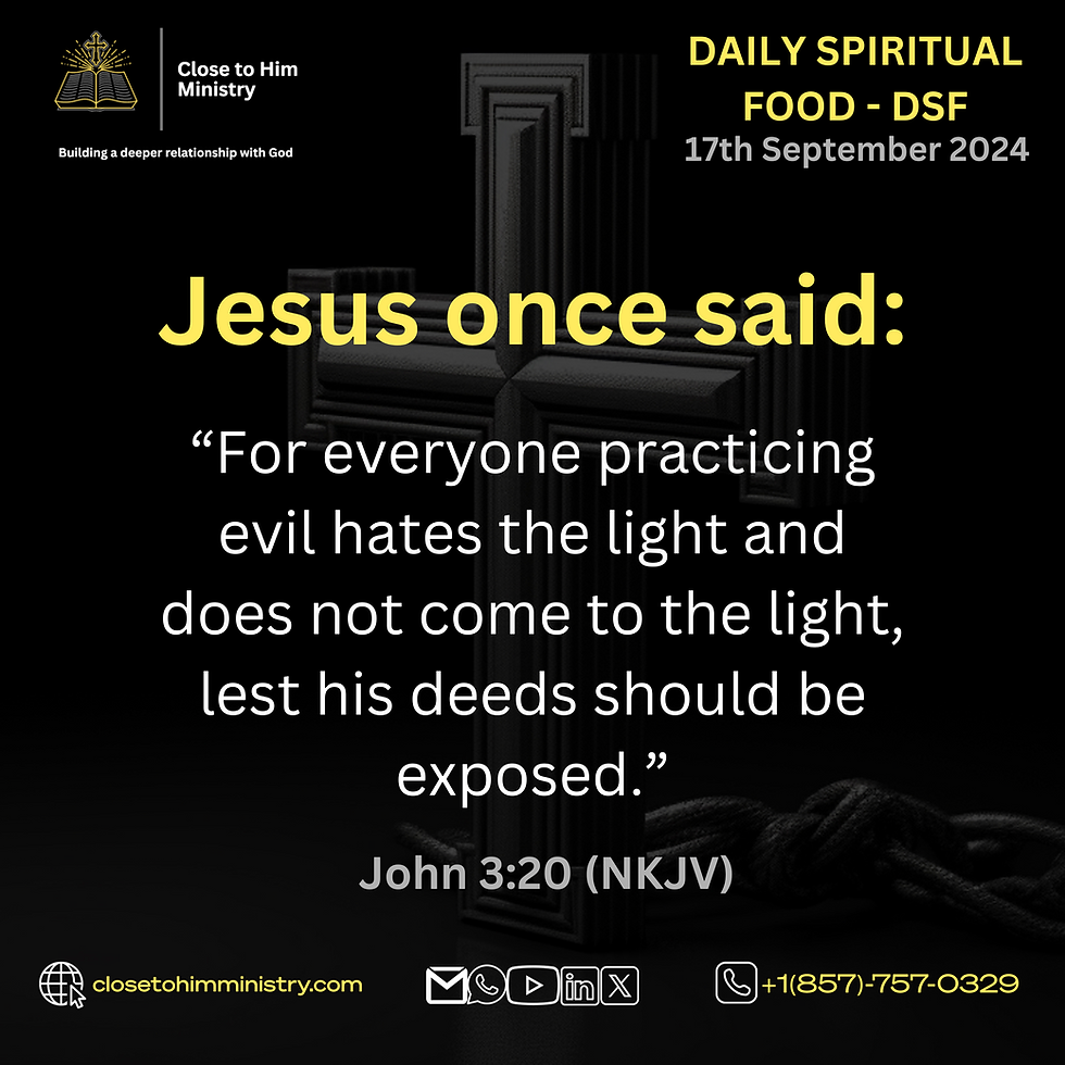Today, we continue with the teachings of Jesus in John 3. Today's verse highlights the natural aversion of sin to the light of truth. Those who practice evil avoid the light because it reveals their wrongdoings.